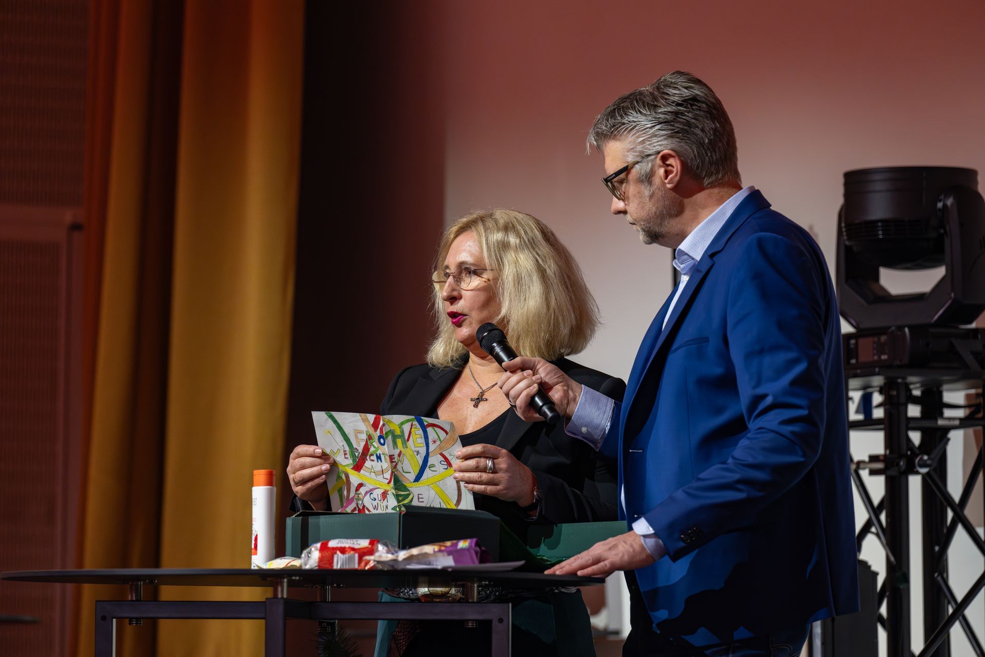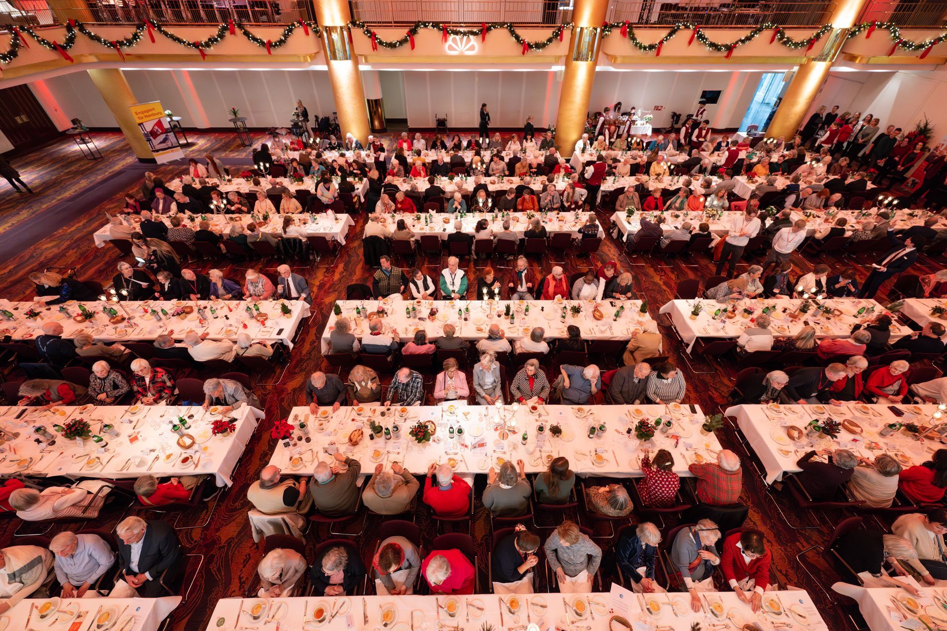 Eingeladen zu dieser besonderen Weihnachtsfeier waren mehr als 300 Seniorinnen und Senioren, die sich über ein buntes Programm freuen konnten: Im weihnachtlich geschmückten Festsaal des Hotels Grand Elysée wurden die Gäste von ihren Tischpaten an Stadtteil-Tischen in Empfang genommen und konnten so gleich zu Beginn mit Menschen aus ihrer Nachbarschaft ins Gespräch kommen. Dazu luden auch das Weihnachts-Quiz sowie die liebevoll gestalteten Weihnachtskarten des Struensee Gymnasiums ein. Nachdem erste Kontakte geknüpft waren, wurde ein köstliches Drei-Gänge-Menü serviert. Zu den weiteren Höhepunkten des festlichen Tages zählten die Künstlerin Jeannine Platz mit ihrer kunstvollen Gestaltung von Weihnachtskugeln, eine weihnachtliche Lesung und der Auftritt des Chors TKantate, der auch zum Mitsingen bekannter Weihnachtslieder einlud. Und zum Abschluss durfte natürlich die Bescherung nicht fehlen – alle Gäste erhielten vom Verein „Hamburger Abendblatt hilft e. V.“ ein Weihnachtspäckchen. Durch das Programm des Tages führten charmant und herzlich Uta Dänekamp und Mark Bremer.