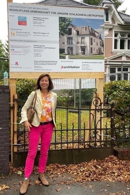 Der Verein Haus für morgen wurde 2017 von Barbara Wentzel gegründet, nachdem ihr Mann mit 55 Jahren einen Schlaganfall erlitt und es für jüngere Betroffene keine passende Versorgung gab. 2020 eröffnete in Hamburg-St. Georg die erste Wohn-Pflege-Gemeinschaft. Heute leben dort neun Menschen, die ihren Alltag wieder aktiv mitgestalten. Das Konzept verbindet professionelle Betreuung und Pflege mit echter Gemeinschaft und Alltagsgestaltung: von Kunst- und Musiktherapie über Yoga bis hin zu Einkaufsbegleitung. Ziel ist es, Betroffenen ein Leben in Würde, Gemeinschaft und Zuversicht zu ermöglichen – mit dem klaren Fokus: Schritt für Schritt zurück ins Leben.