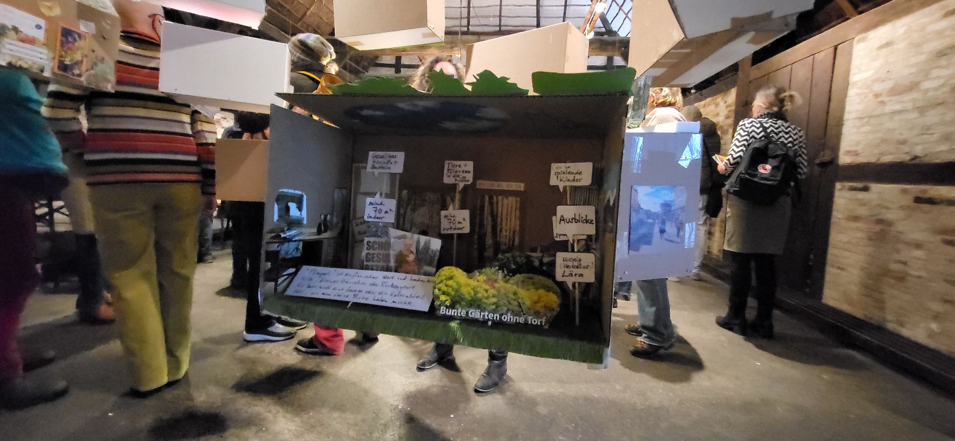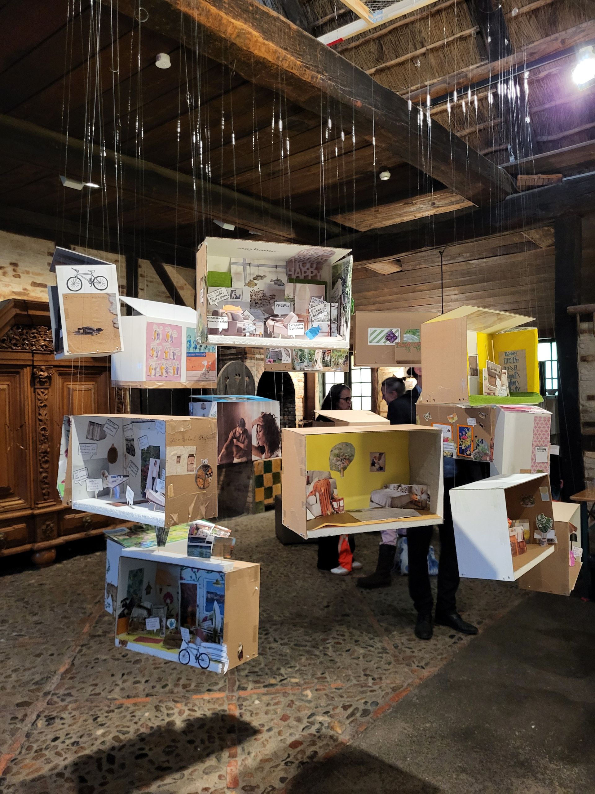 Nach einem "Wohntypen-Check" zu Beginn wurden Gedanken und Ideen in künstlerische Formen übersetzt mit Fotoinszenierungen und ganz persönlichen Raumgestaltungen aus Karton und Papier. Vorkenntnisse waren dazu nicht erforderlich - die Künstlerinnen hatten eine große Vielfalt an inspirierenden Materialien vorbereitet, sodass alle Teilnehmenden sich ihren ganz individuellen Wohntraum "bauen" konnten.