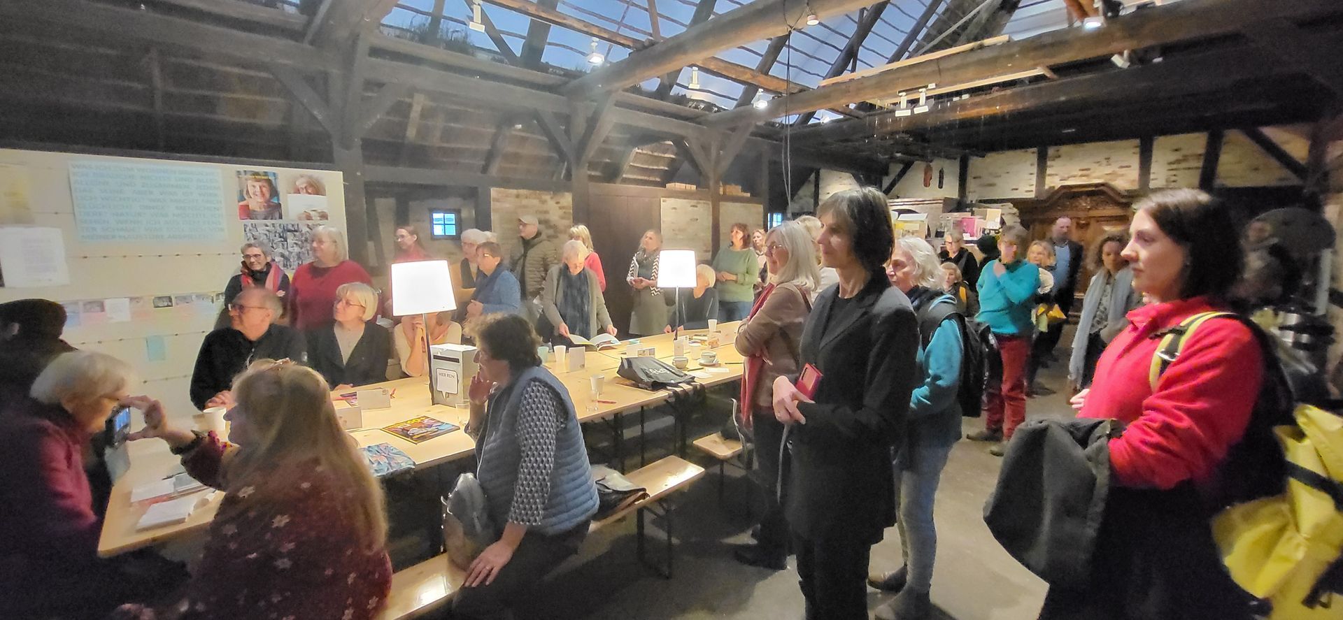 Auch noch nach Ende des offiziellen Teils standen die Expertinnen vom Podium für Fragen und weiterführende Gespräche zur Verfügung. Die Besucherinnen und Besucher nutzten die Gelegenheit auch, um sich mit Gleichgesinnten auszutauschen und Kontakte zu knüpfen, z. B. zu gemeinschaftlichen Wohnformen - ein Thema, das für viele besonders im Fokus stand.