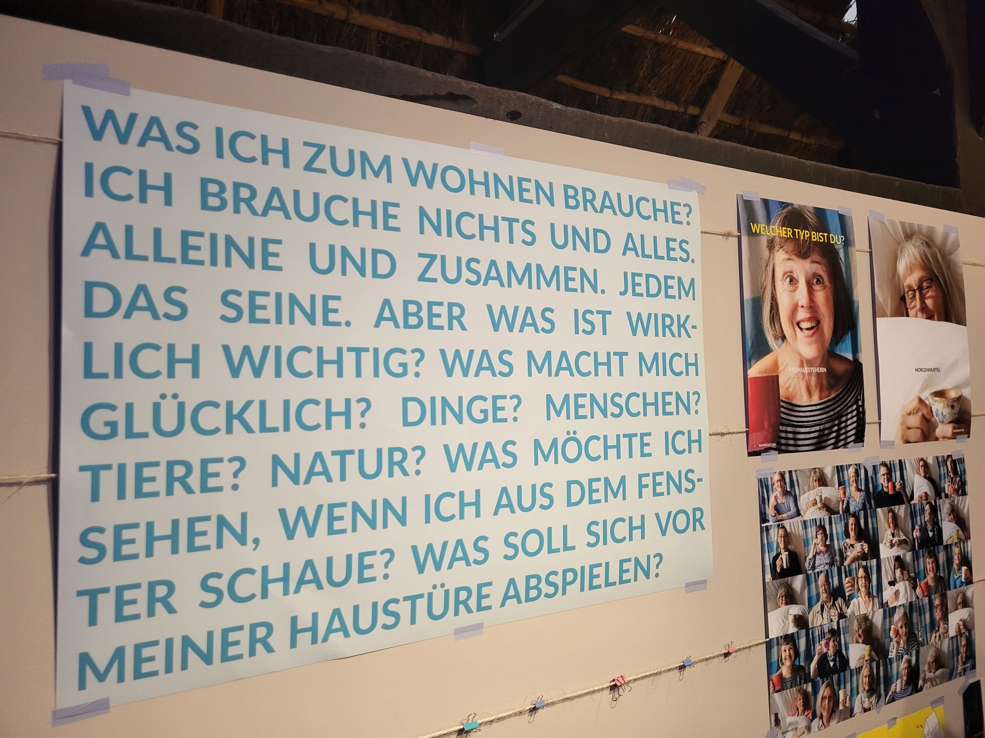Den Auftakt bildete eine Podiumsdiskussion, gefolgt von mehreren Kreativ-Workshops der Künstlerinnen Kristine Thiemann und Eva Kolb. Wir hatten dazu Interessierte ab 60 Jahren eingeladen, sich sowohl im Gespräch als auch gestalterisch mit persönlichen Erfahrungen, Lebensfragen und Zukunftswünschen rund um das Thema Wohnen auseinanderzusetzen.
